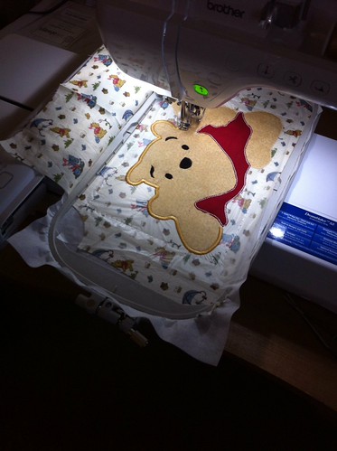 Until the very last step and the satin stich was a little off and didn't cover the (unfortunately darker) tack down. It was heather sues safari donald which I have done lots of times but this was the first time in 6x10. Plus it wasn't placed right. So the bib was ruined because I spelled the name wrong.I put 3 ms in Emmett. Emmmett. You think the mom would notice?