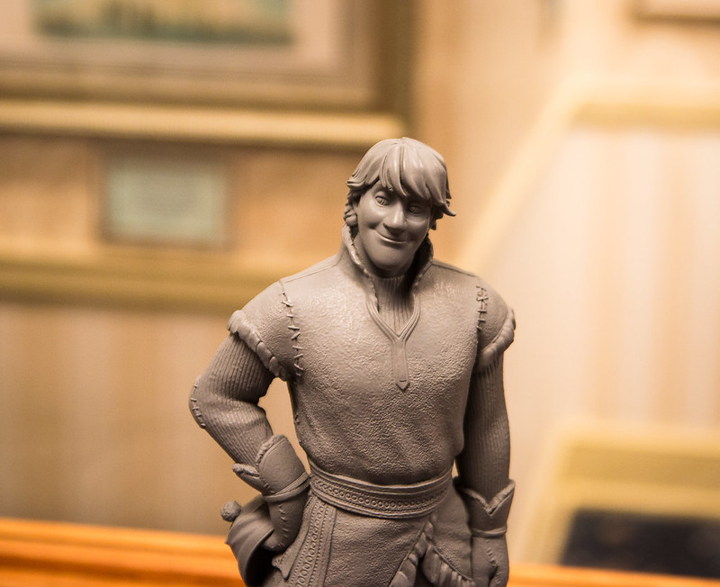 After the parade, we stopped inside the building for Great Moments with Mr. Lincoln to see an art exhibit featuring Frozen. Right inside is the bench where Walt sat watching his daughters ride the carousel where he got the idea for Disneyland.