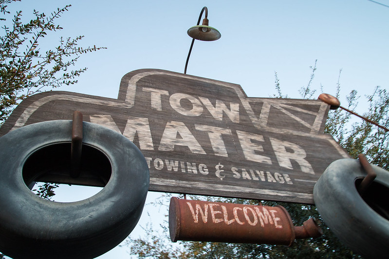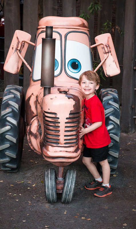 When we came out of the ride, the end of the parade was passing. We followed the parade up the path towards Cars Land so that they could get one more ride on Mater’s Junkyard Jamboree.