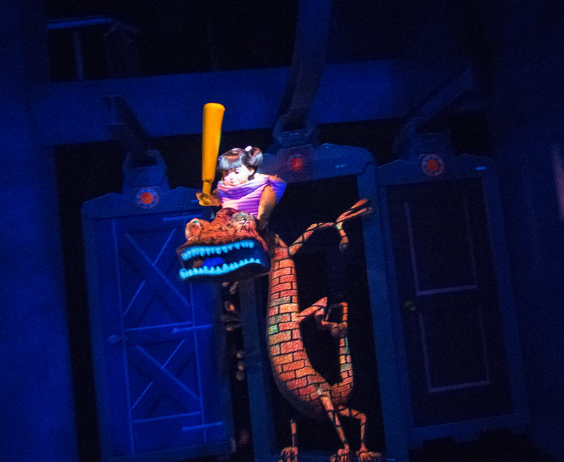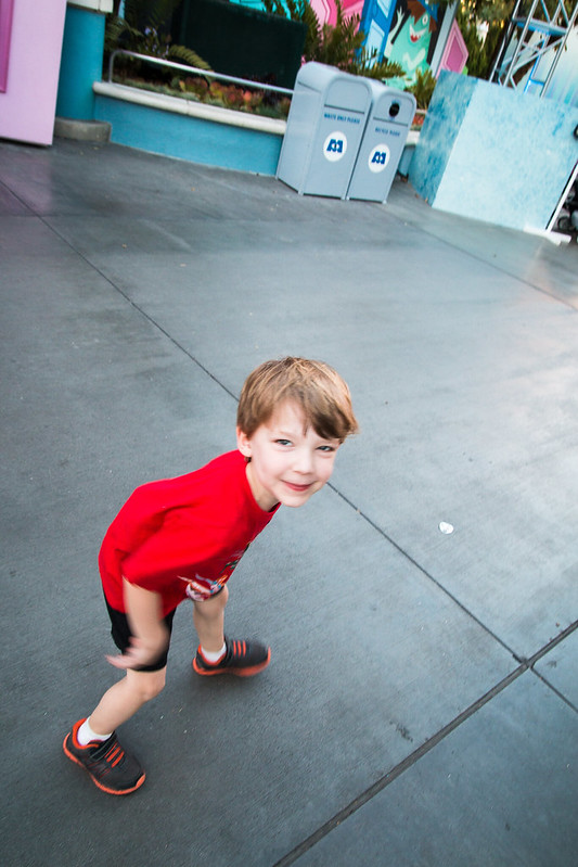 Once we were finished with Crush, we wanted to go over to ride Monsters Inc. one more time. We had to hurry to cross the street to get there before the parade passed and blocked us in, but we made it!