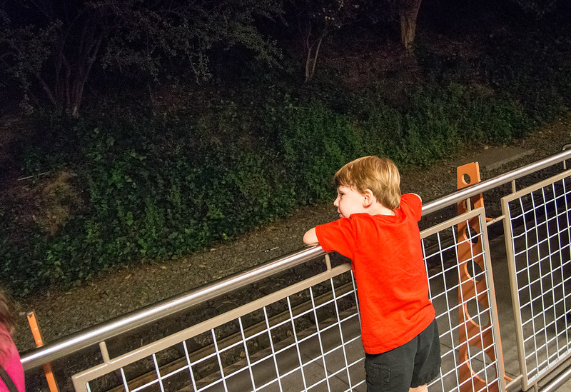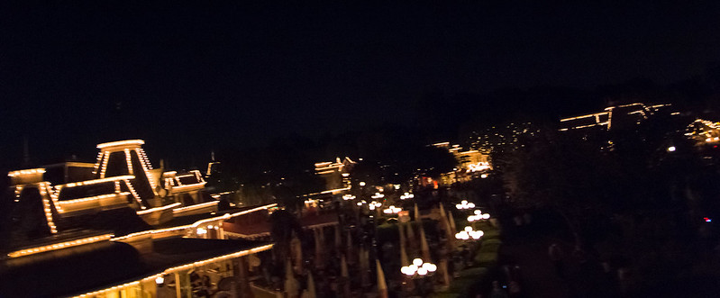 After looking around in there for a while, we wanted to cross over to DCA for a little more time before finishing out the night at DL. Although we were leaving, DH got this photo as we passed under the train station.