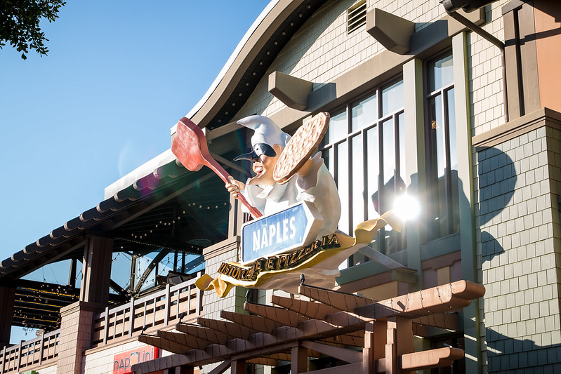 That evening, we had an ADR scheduled at Naples for 5 pm. But because we had gotten FPs for Fantasmic for that night and we didn’t want to cut it too close getting there to find a spot, we decided to go over and see if they could seat us early. Just a short walk later, we were in Downtown Disney and standing in front of Naples!