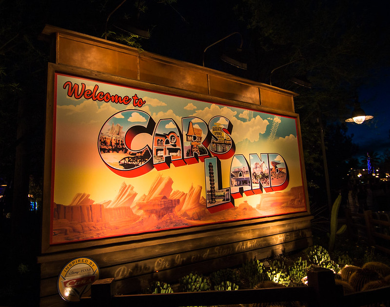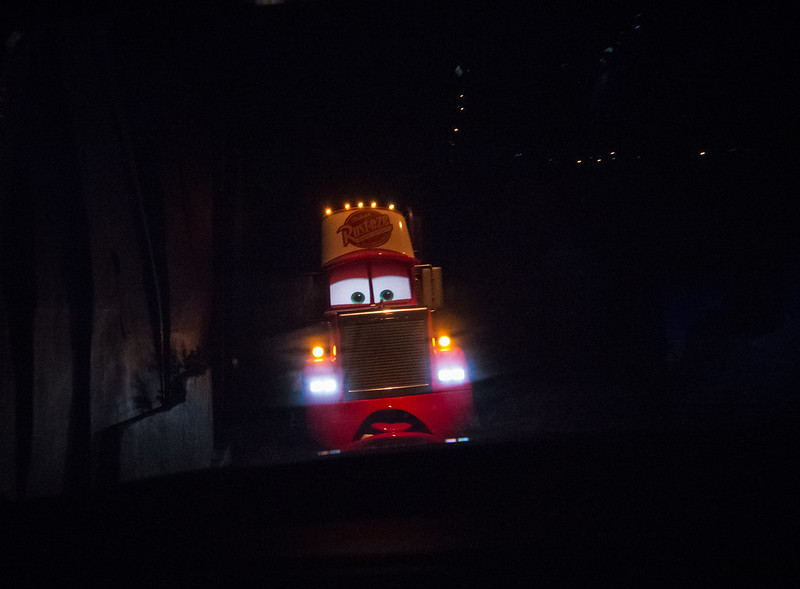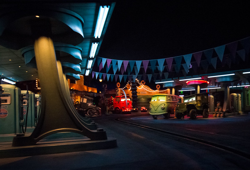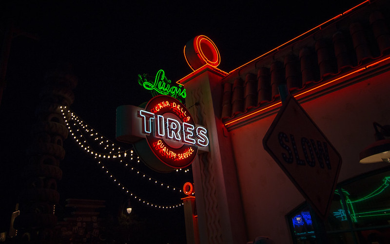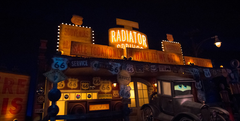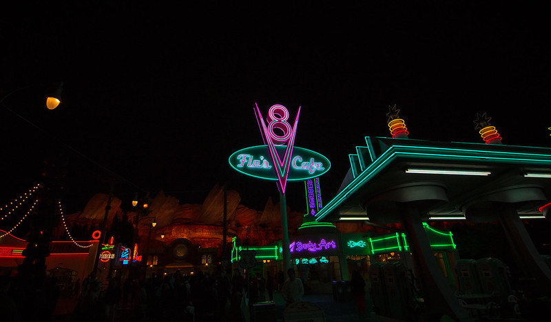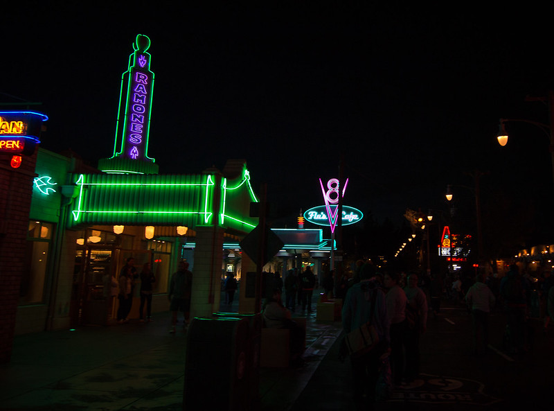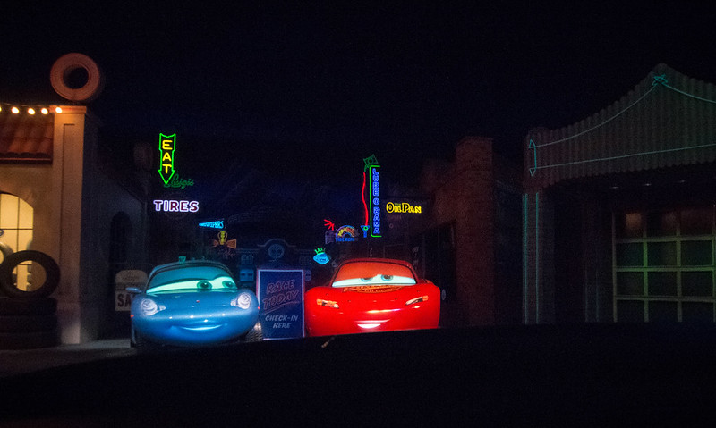 We met up with him in Cars Land, and we made our way out slowly while DH took some pictures of all of it lit up at night.