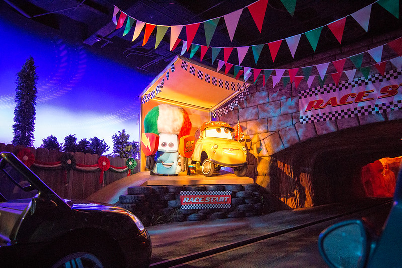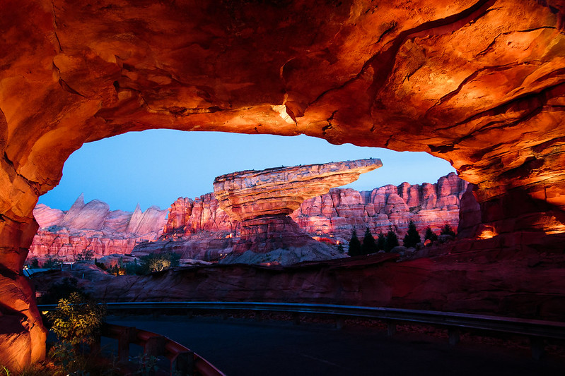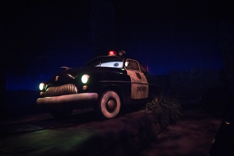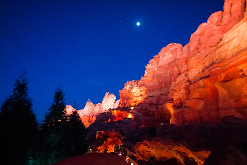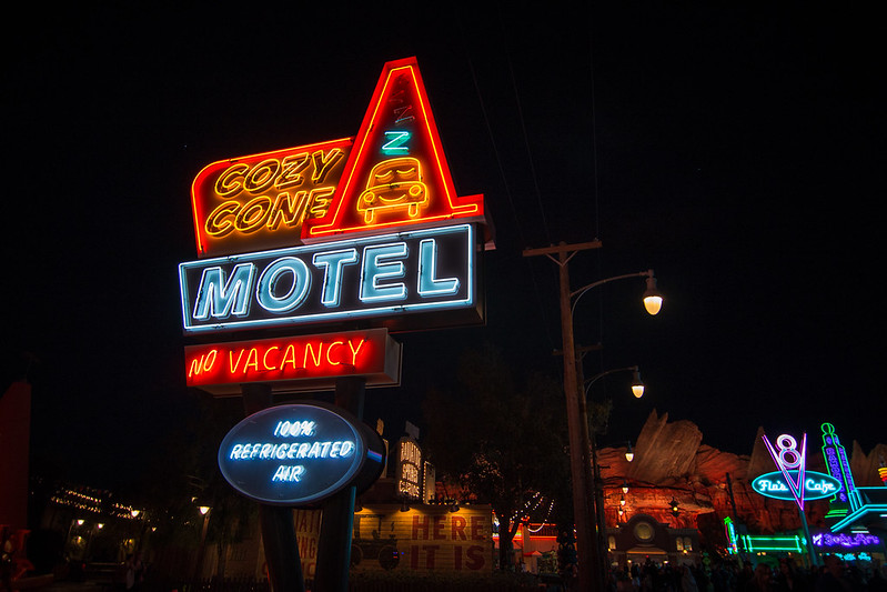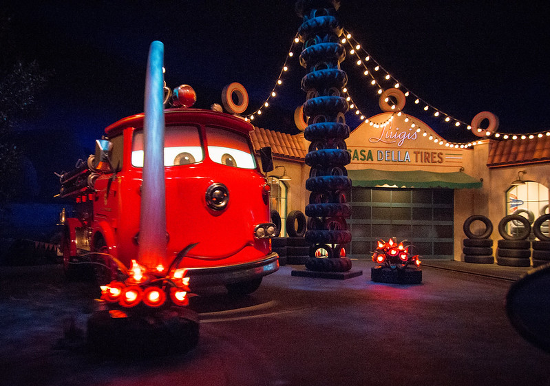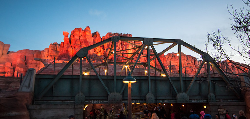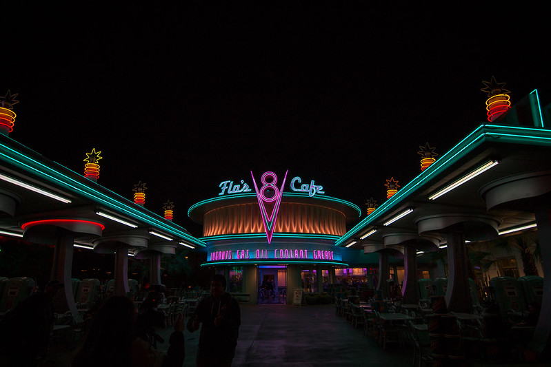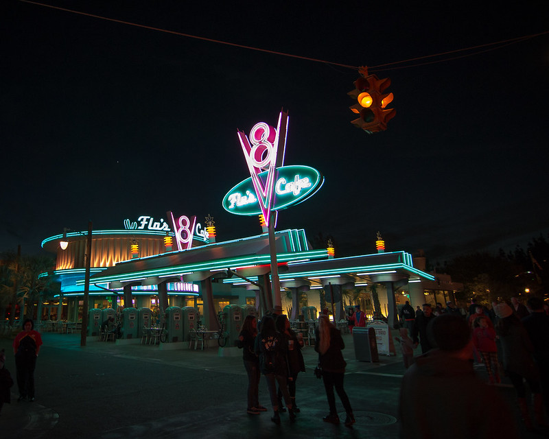 We met up with him in Cars Land, and we made our way out slowly while DH took some pictures of all of it lit up at night.