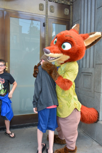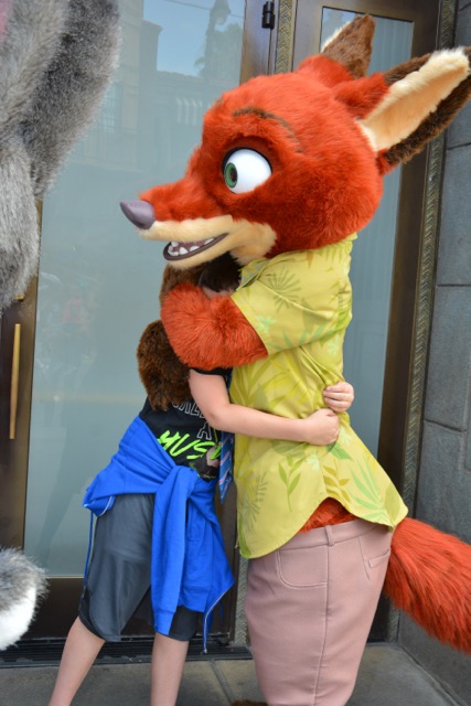 We got our fast passes for Tower of Terror and had quite a bit of time to kill. I knew Nick Wilde and Judy Hopps had their meet and greet in the area, but when we got to them, they were going on a break. We made the decision to wait them out...they were a MAJOR priority for this visit, since at the time, they were unable to meet in WDW (although they will meet at the MVMCP this year...we plan to skip them though, since the wait time will be insane. My hope is it cuts down a little on the Jack/Dwarfs lines a little at the party.)