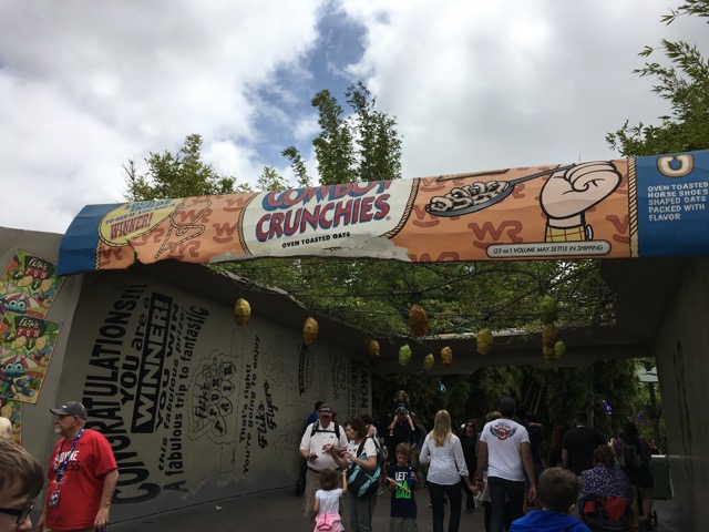We made our way over toward the Tower of Terror by walking through a cereal box (Cowboy Crunchies, the only cereal that's sugar frosted and dipped in chocolate, proudly presents...Woody's Roundup!)