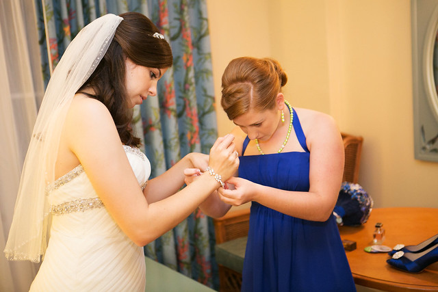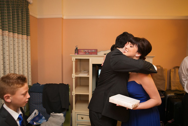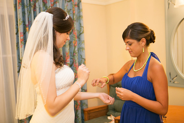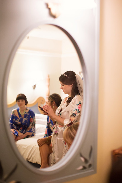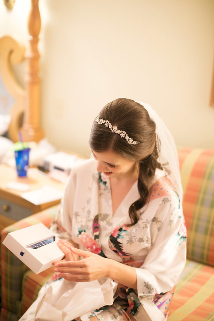 Back in my room, everyone but me had gotten dressed, since it was coming up right around 6:30am. I knew that everyone was due back in my room at 6:45am for the Dressing of the Bride, so it seemed the time had come for the all-important Giving of the Bride and Groom gifts. I'm really not kidding when I say every breath of our day was scheduled - I really had no idea what I'd be getting myself into!