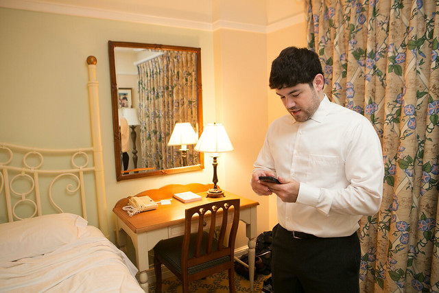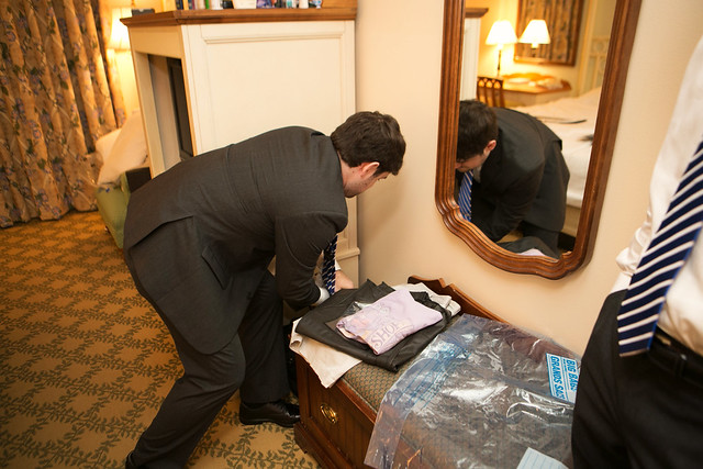 Speaking of the groom's room (where Nate & Kristina had ducked off to a bit earlier), Kevin had been instructed to remove his jacket and shoes as previously mentioned, so that they could be documented accordingly.