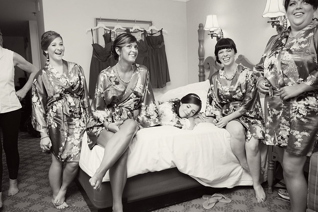 We all kind of felt like we should be doing something but had nothing TO do - I had thought my hair & makeup would have taken this long but obviously it hadn't, and yet it was way too early to get into my dress (which was scheduled at 6:45am - because everything that happens on your wedding day is scheduled. EVERYTHING.) so I have lots of photos of us trying to work off our camera jitters and waiting around.