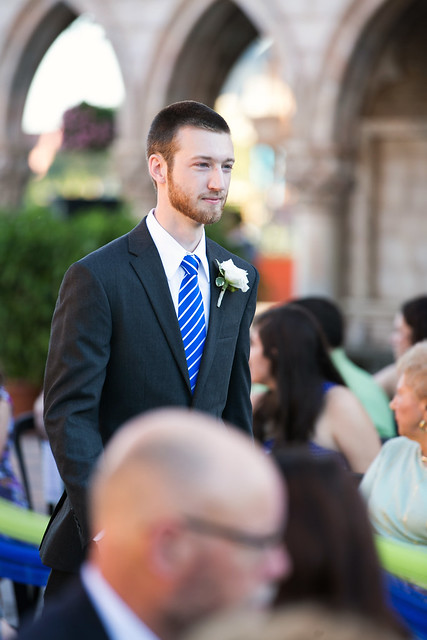 I love this photo not only because Kevin's in it, but because of the girl in the back row not looking at him - that's our best man's girlfriend, and she's very obviously waiting for her man (who you might also remember is named Kevin) to come walking down the aisle, which I think is just so cute