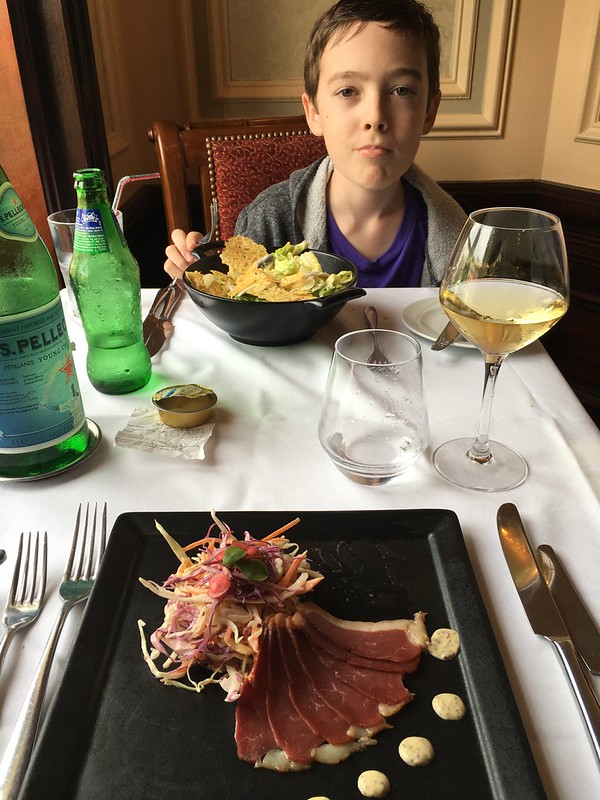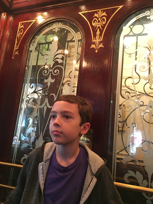 As was mentioned in another thread, we upgraded to business class on United to Paris and it made all the difference in the world. Gavin and I both got a lot of sleep and that helped us make the most of our first day. We arrived in the morning around 10am and had planned to take the TGV which is a 10 min ride from the airport, but the next train wasn't for a couple of hours so we took the DLP version of the Magical Express bus instead. It was ok, but it took an hour to get here. We're staying at the Disneyland Hotel. The security seems very tight. There are security barricades raised at the entrance gates at all hotels. All bags were sent through x-ray machines and I was wanded with a metal detector.