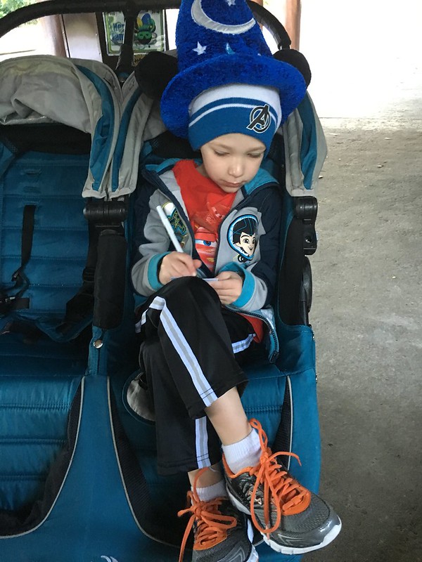 DH texted me while I was feeding DD that DS was really not acting like himself. So they met me over at First Aid after she was done and we got them to check his temperature because he was starting to feel a little warm. The nurse used the ear thermometer and his temp was only 99.7. DS was saying he wanted to go back to the room for a nap, but I really hated to spend our last day in the room, so I convinced him to stay at the park and take a nap in the stroller, which he agreed to. Note: I would later feel terrible about this!