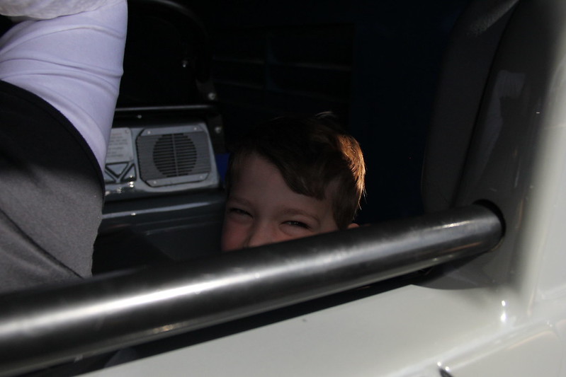 Once we finally exited the park, we split up again. DD was sleeping in the carrier and I didn’t want to wake her up by taking her out to put her in the car, so I decided to take the bus. DS wanted to ride the bus too, so he came with me while DH got the car and moved it to the TTC. DS was super excited to get a ride on a Disney bus!