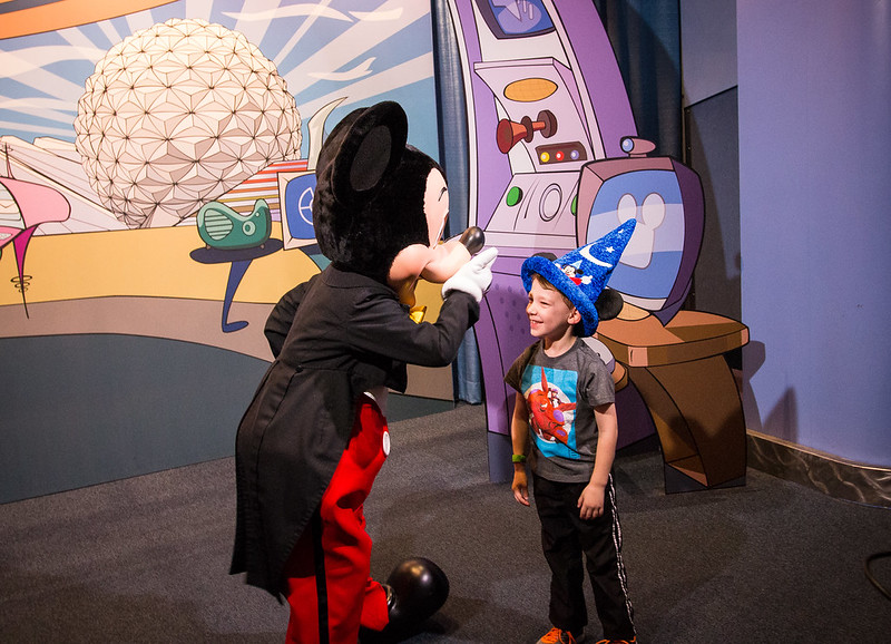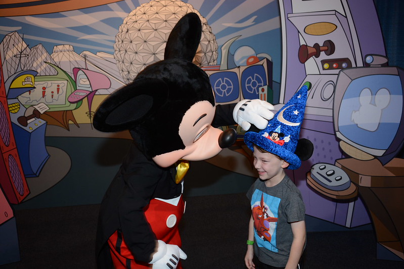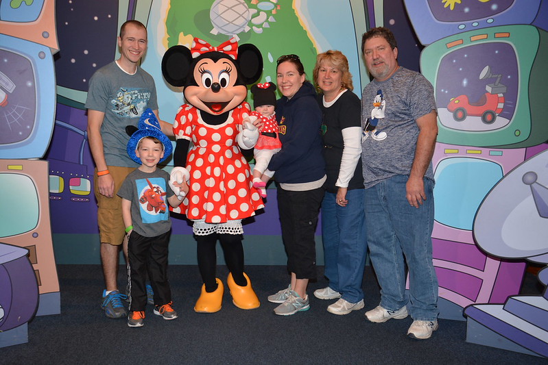 After meeting Baymax, we headed over to use our Character Spot FP+. We had this booked with my parents, so they met us at the entrance and we all went in together. When we got over there, there was no Goofy, just Mickey & Minnie, so that kind of sucked. DD was being pretty cute in line though!