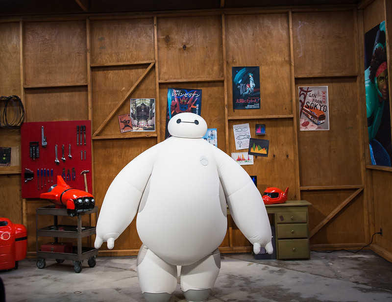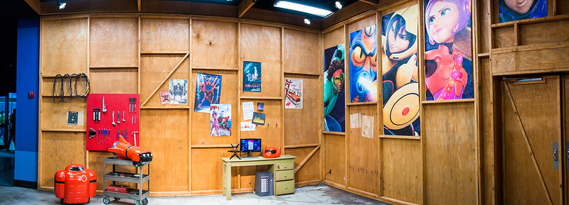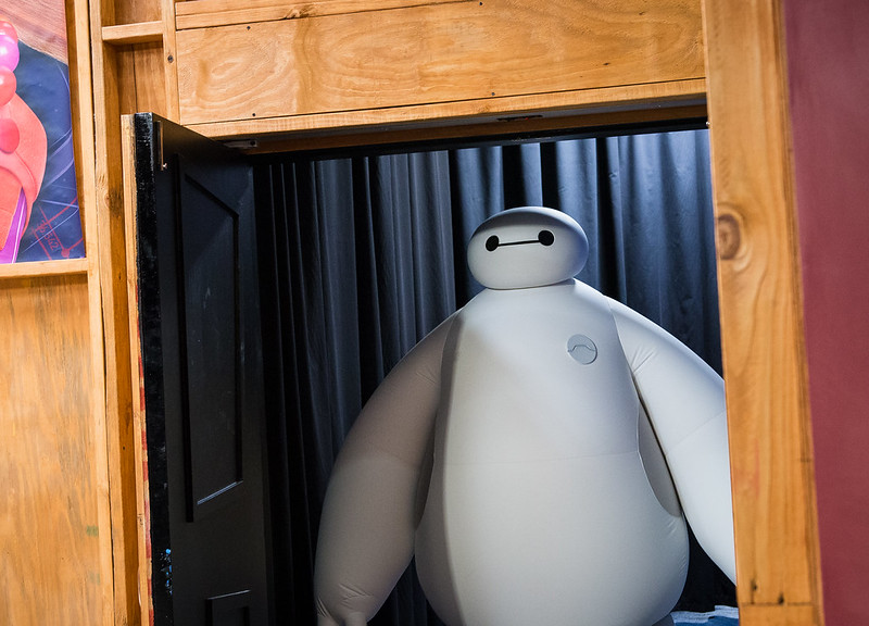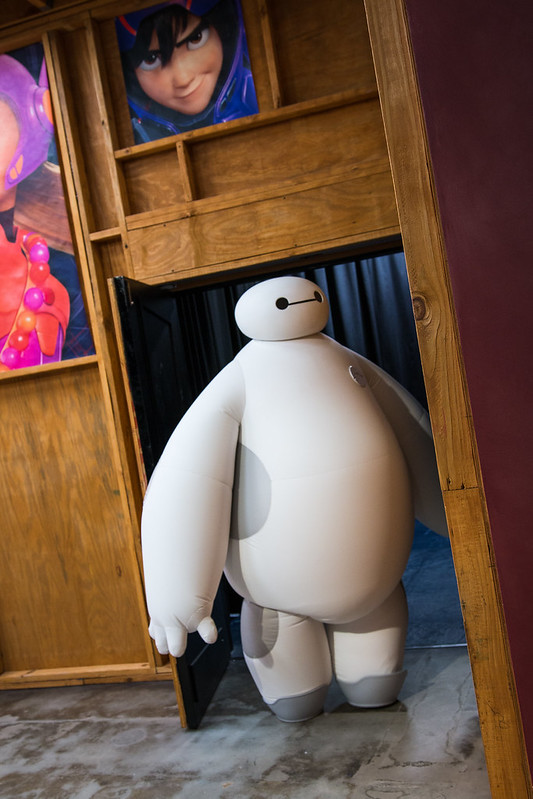 We had to wait a minute while Baymax went in to charge his batteries real quick, so DH got some pictures of his meet & greet area while we waited.