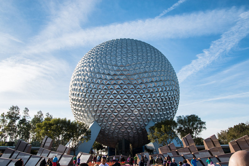 After a fun night at Hoop de Doo, we were up early the next morning at 7 to get ready and have some breakfast. We were headed to Epcot that morning! It was set to open at 9 am, and we left AKV at 8:30. In almost no time at all, we were parking and heading up towards Spaceship Earth.