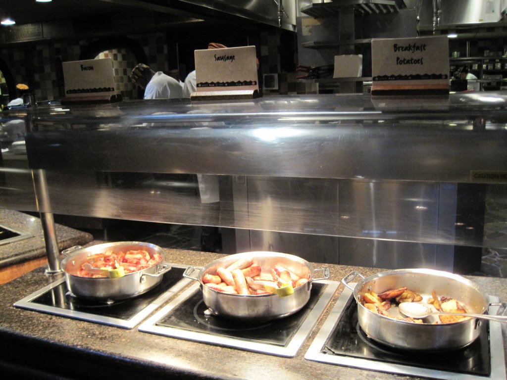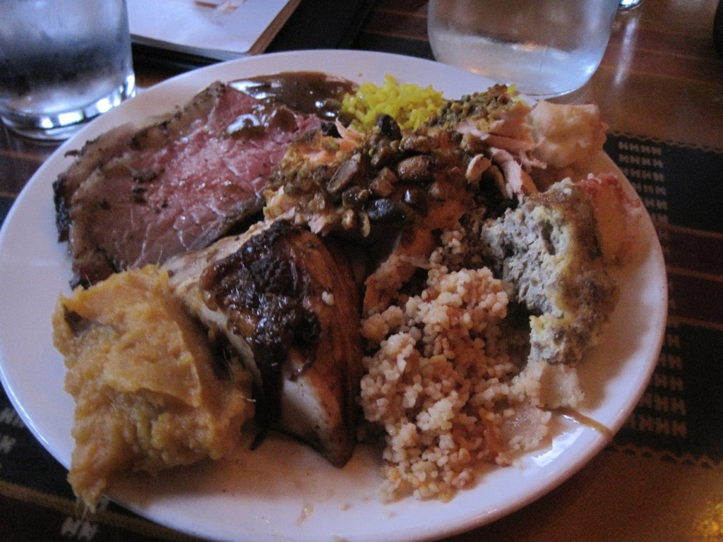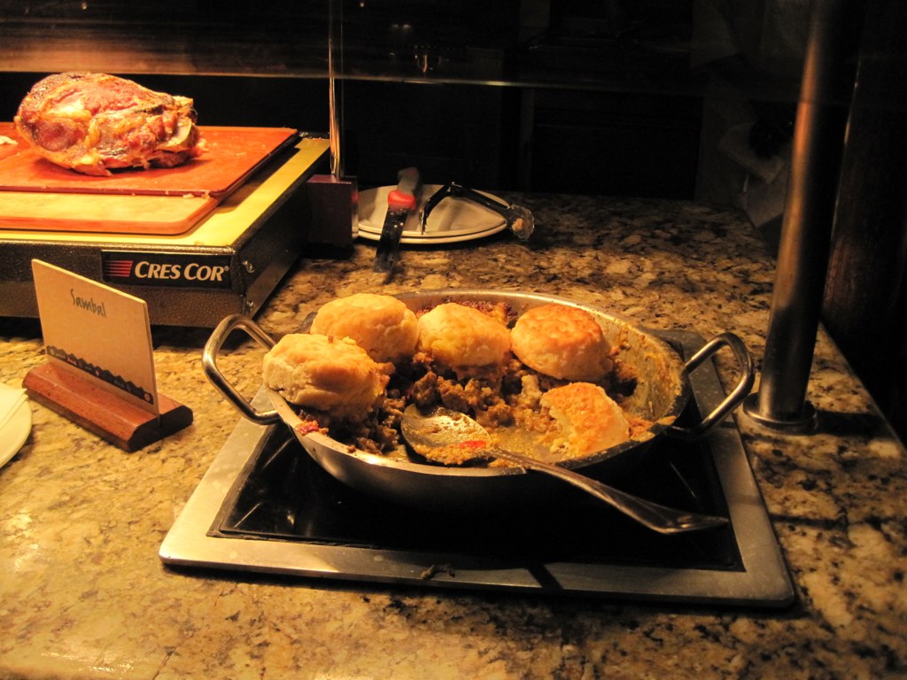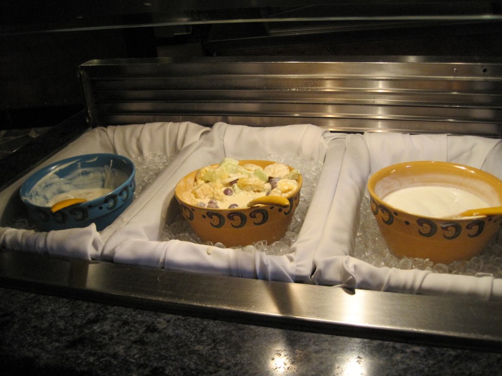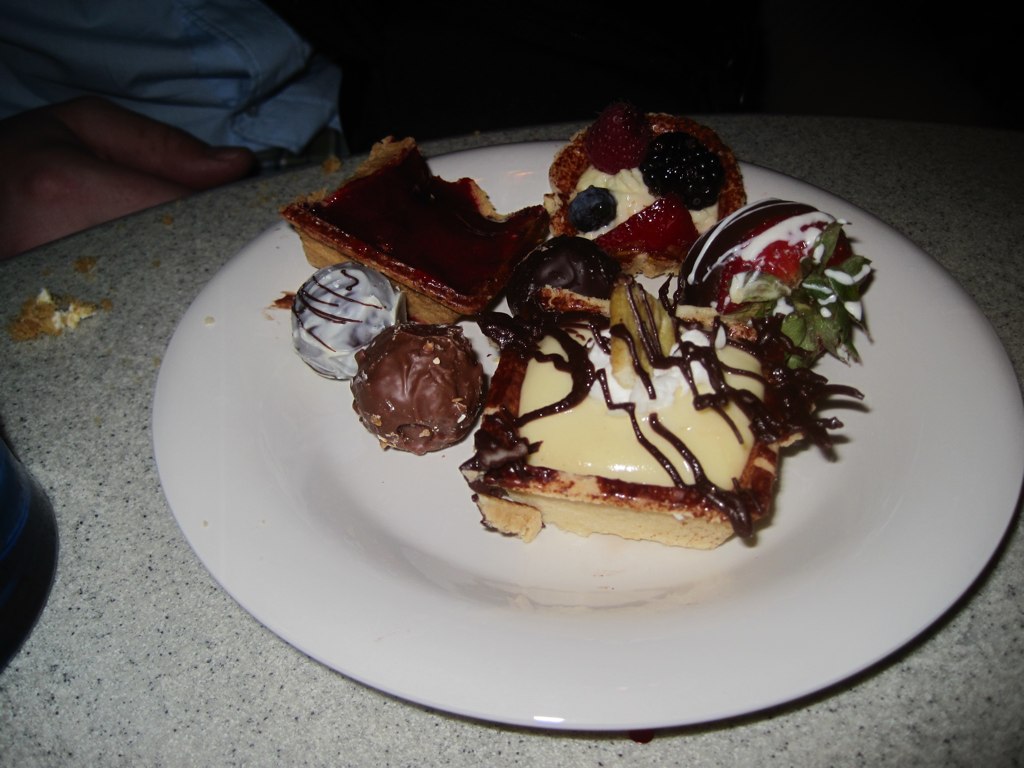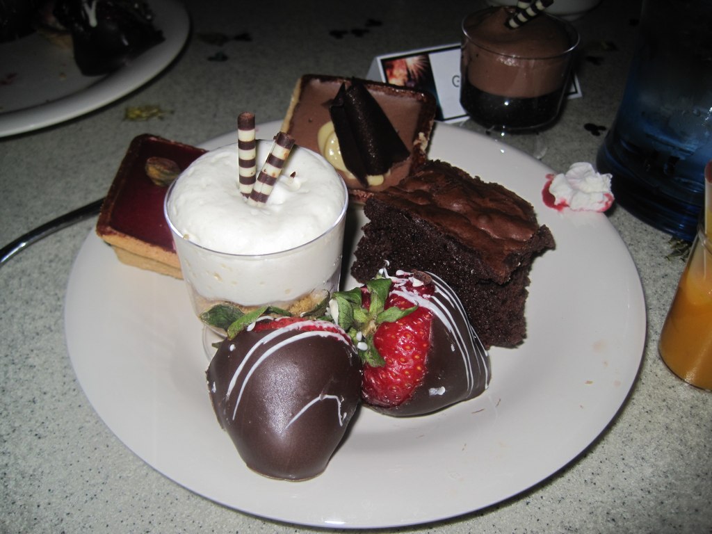 Our reservation was for 8:05 and we checked into the Crystal Palace before they had opened. We were seated quickly, one table down from where we sat when we visited last year and we had the same waiter. He took our drink orders and told us to visit the buffet. The restaurant was still fairly empty.