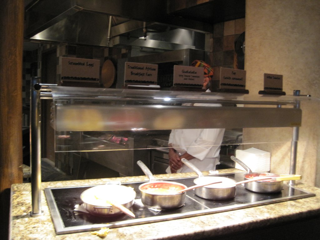 The food was all very fresh looking and they had a good selection of breakfast food. Two things that Crystal Palace serves that I have not seen at other buffets are chocolate Mickey waffles and puffed french toast, found in the childrens section of the buffet. I found the food to be very good, Crystal Palace is one of the better character breakfast buffets. I forgot to take pictures until part way through.
