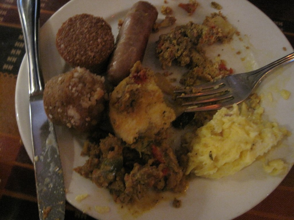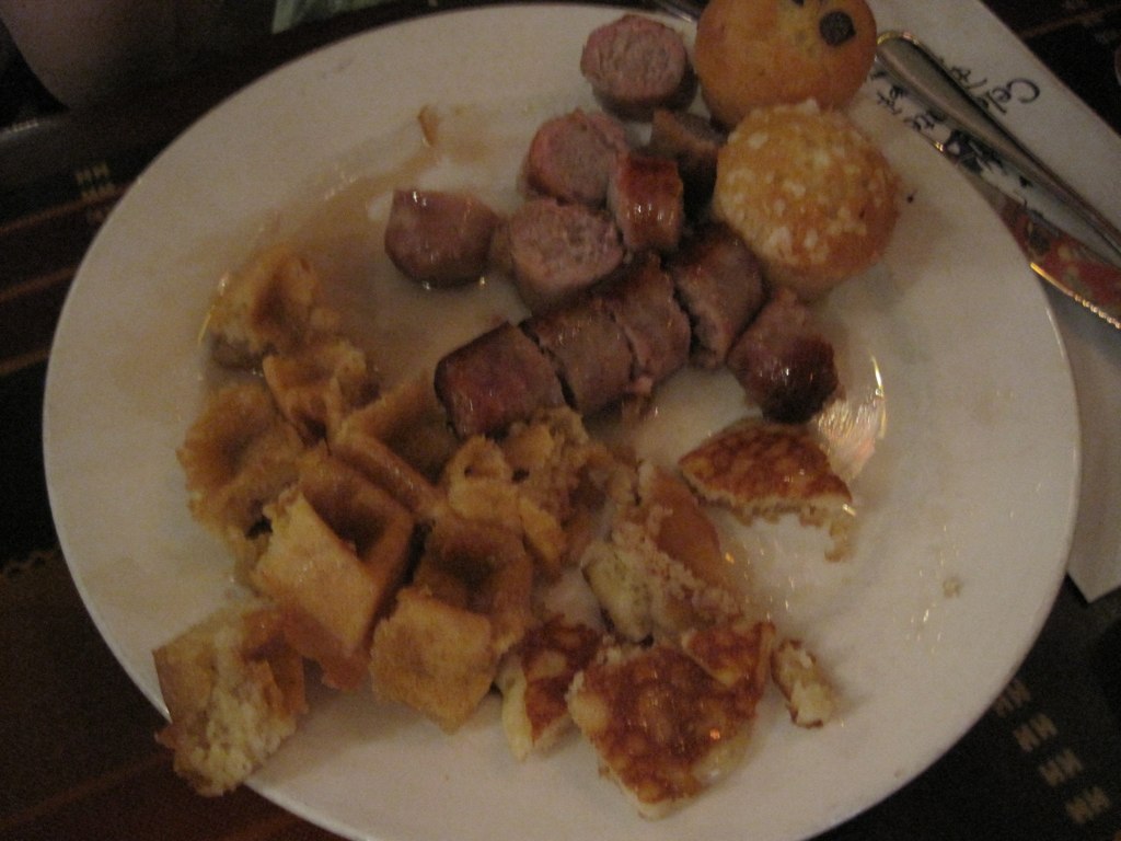 From the to bacon, a mickey waffle, smoke salmon, and berries. the puffed french toast and pineapple is missing. So...