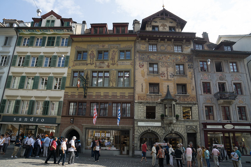 We arrived in Lucerne in the afternoon. Our hotel was the Schweizerhof - very fancy. It looks over the lake and we all had lakefront rooms. Apparently, it was voted as one of the top hotels in Switzerland. A fancy dinner at the hotel was planned for the evening. So for now, it was off to see a bit of the city.