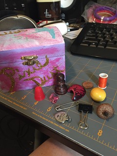 So, I had to share this moment I just had. A few months back DD and I made this little Tinker Belle box from an old treasure box craft she had. It's tiny, a little smaller than an index card box. I've been trying to think of how I could use it for her Tinker Belle gifts, but since it's so small I was at a loss. So I'm looking at it this morning, and I had an aha moment; Tinker Trading!