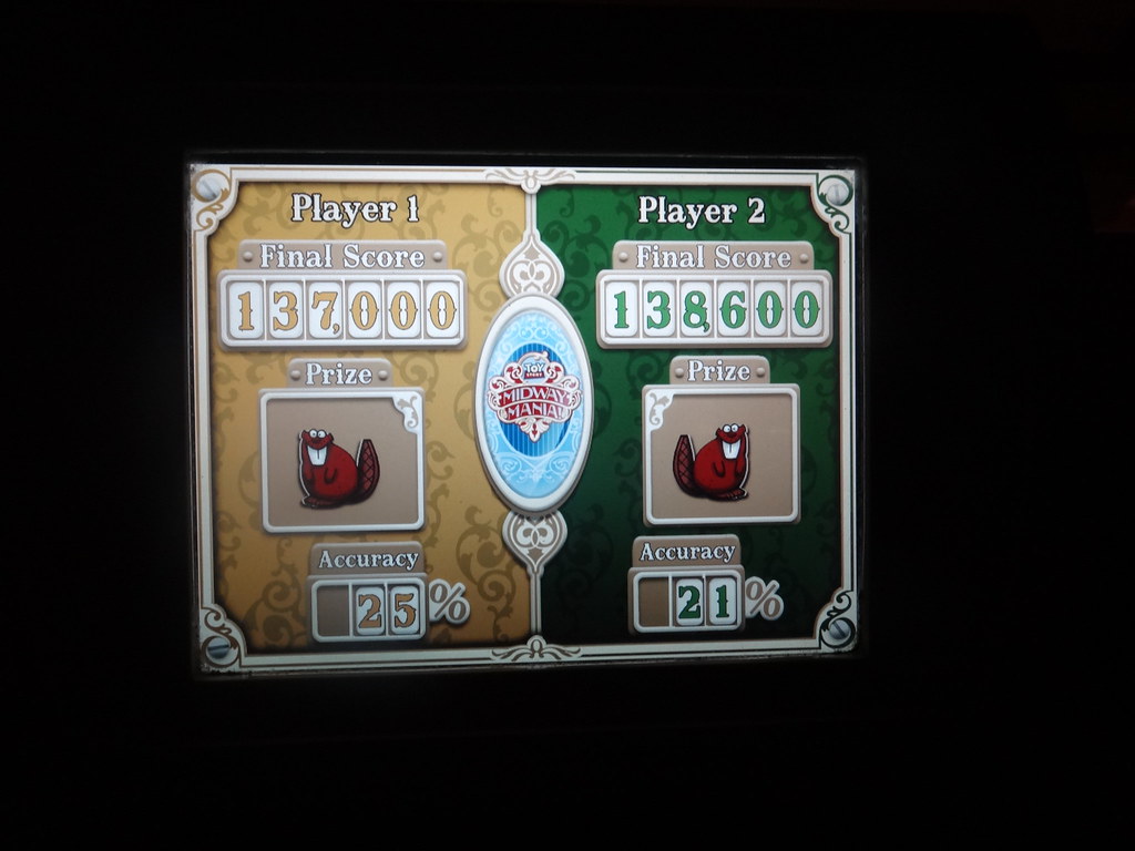We hopped onto Toy Story Mania and played a super close, albeit slightly pathetic round!!
