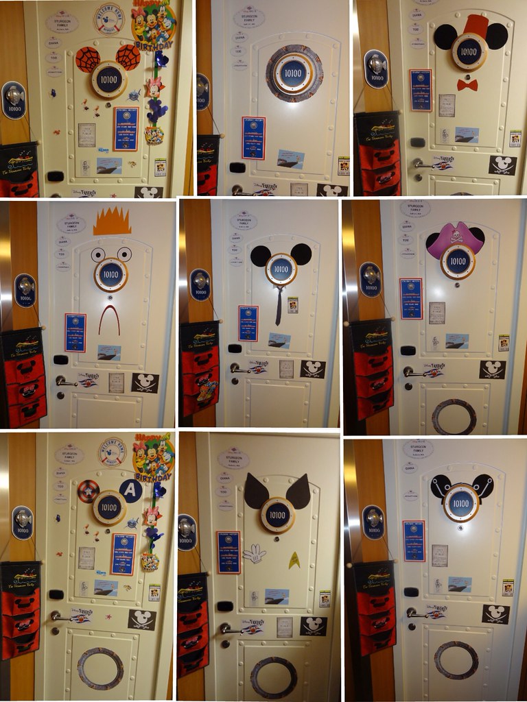 Here's a collage of our doors from the 2/16 Fantasy cruise. Except for the pink pirate hat ears, all are my own designs (well, a couple were other things that I adapted.)