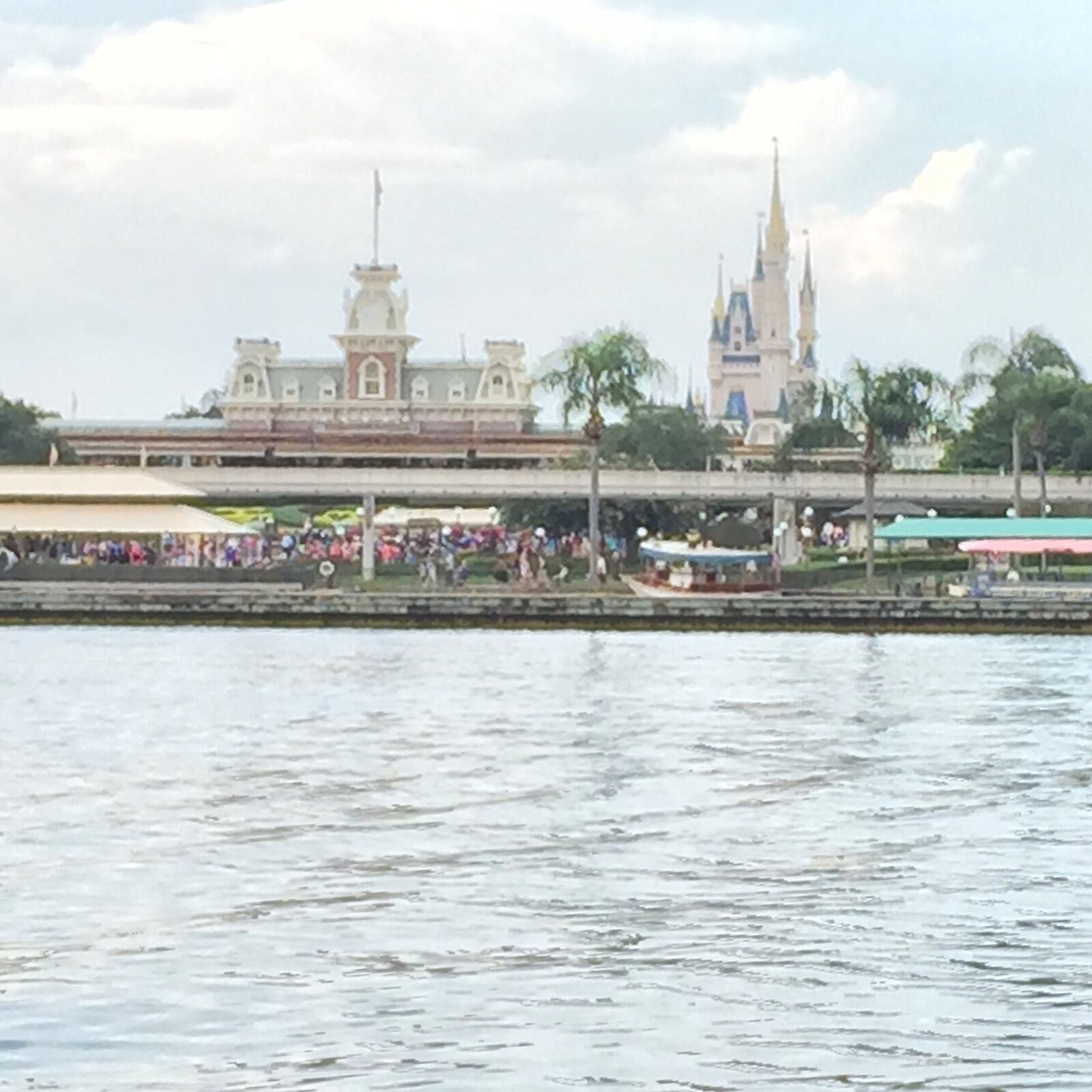 We got down to the bus stop and watched the time for a bus to MK go from 4:50 to 5 to 5:10. It stayed around 5:10 for the remainder of the time we were waiting until finally a bus showed up. We got on it and the two stops to the Swalphin were the most excruciatingly long moments of my life. Anyone know Mel Brooks' High Anxiety song? That's like my theme song when it comes to being late lol. We made it to Magic Kingdom and booked it pronto for the boat which was thankfully still loading. We were the last people on (I seriously saw the large gap between us and the people getting on and lost hope, but either they saw us and waited or we just had really good timing) and seated.