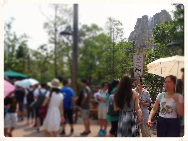 The Tarzan area was still completely empty, and the CM told me I may as well go away and do something else and come back in 15 minutes (which would be about 20 minutes before the show was due to start). Well, I’ll admit that it threw me a bit, but I decided that I could fill in 15 minutes by wandering around the area and taking photos (since I hadn’t gotten many of the general area yet, and there was certainly a lot to see!). I started off my wanderings at the entrance to Soaring, where there was another CM holding a sign to mark the end of the line. This one said 180 minutes!