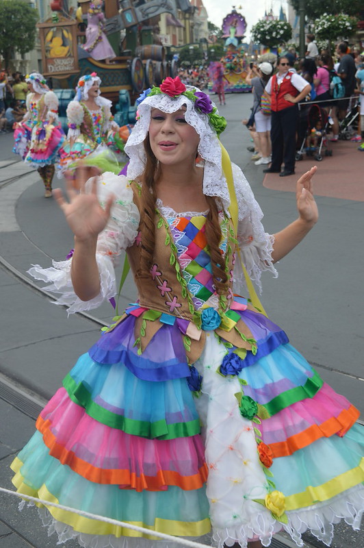 That's great you've made it to Disney with me. Plenty more days to go.It's so funny you mention this, because I have thought the very same thing every time I watch FoF! Why is she the only princess made to walk?Despite Snow White being the oldest of the Disney Princesses she has to walk while all the young whippersnappers get the floats.