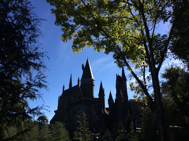 The ride simulates a trip over to school. The windows are actually screens that show you passing from London into the countryside and doors are made to look like frosted glass and you can see and hear people passing by. I think they had the lunch trolley lady and then Harry, Ron, and Hermione. The one really off putting thing here is Hermione’s voice. They couldn’t get Daniel Radcliff or Emma Watson to come back to voice the characters or do the acting in Escape from Gringott’s so, they used other people. For the ride, I barely noticed because I was having too much fun but on the train, wow. Fake Hermione sounded nothing like Emma Watson and for me, it really ruined the affect. I mean how do you go to so much detail for every last thing about WWoHP but not find someone who even remotely sounds like one of the main characters. Okay sorry, rant over. Once we arrived in Hogsmeade, I was excited to explore it during the day. First things first, I NEEDED to get on Forbidden Journey again. The wait was only about 20 minutes so not bad.