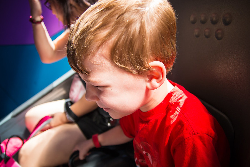 When the ride started picking up speed at the end, DS looked at me a little freaked out and said, “But I didn’t make a fast car!” He held on tight for the fast outdoor portion, and said, “It’s fast, but I’m not scared!” At the end of our ride, he kept saying over and over how awesome it was, but when I asked if he wanted to ride again, he said once was enough. Lol