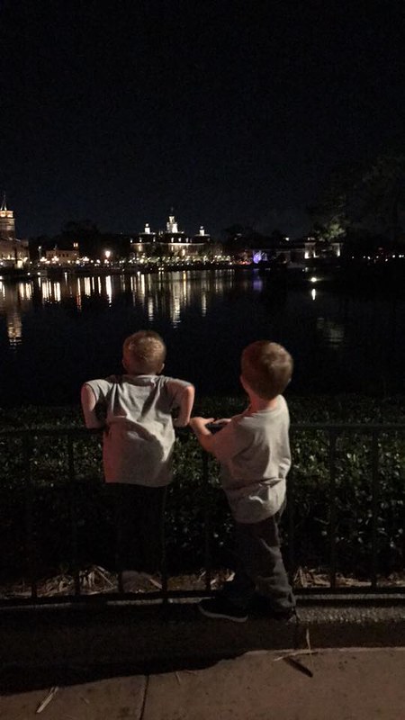 The boys and I waited for everyone else and I began to wonder what the hold up was. I left Jennifer, Beth and DML to deal with Jim. He has 2 speeds - slow and stopped. He isn't seeing well especially at night and it was starting to get dark out. If I try and help him he gets MAD!!! I know it's the stroke but it gets tiresome so I gave hm and I both some space. Mikey borrowed my camera to take a picture of a Hidden Mickey