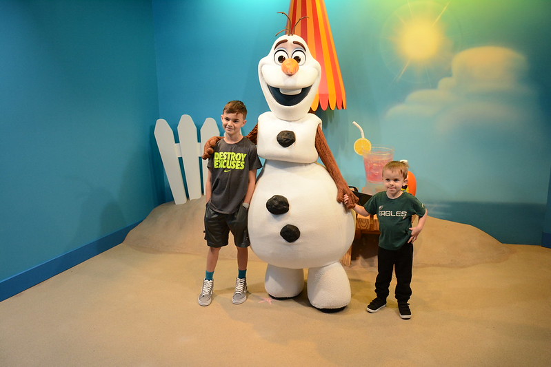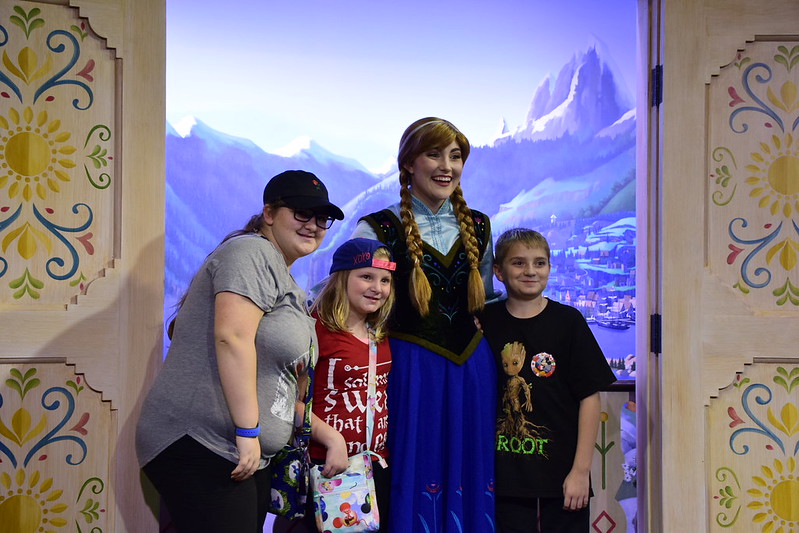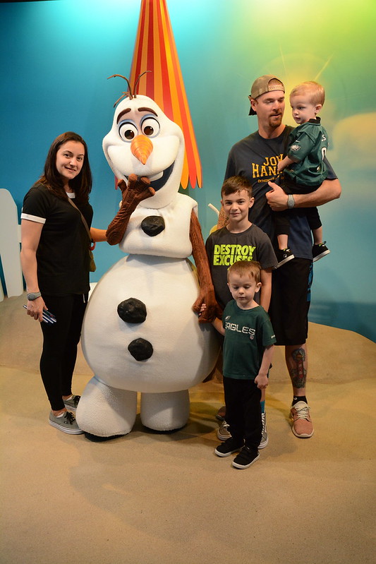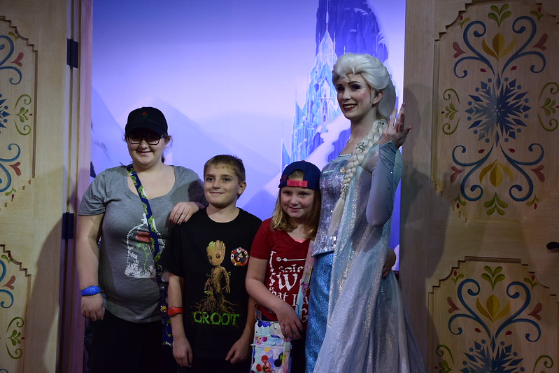 Finally done in Japan we were on our way to our last FP+. Dinner was at 3:30 PM and it was now after 6. Table service meals take a chunk of time. The last FP was for Frozen Ever After so we were off to Norway. I got through the FP entrance and waited, and waited, and WAITED!!! Finally everyone caught up to me and my Jennifer was MAD!!! This girl never gets angry, she is the most easy going person I know. She actually YELLED at someone for cutting Jim off. I knew at least 30 people had passed me. It turns out that as Jim was trying to get through the MB check point they were "climbing" over him. She had a major melt down. No one would slow down to let him in. I am used to it having made a few trips in an ECV. Finally someone, I think the CM, saw what was happening and stopped the line to let Jim get through.