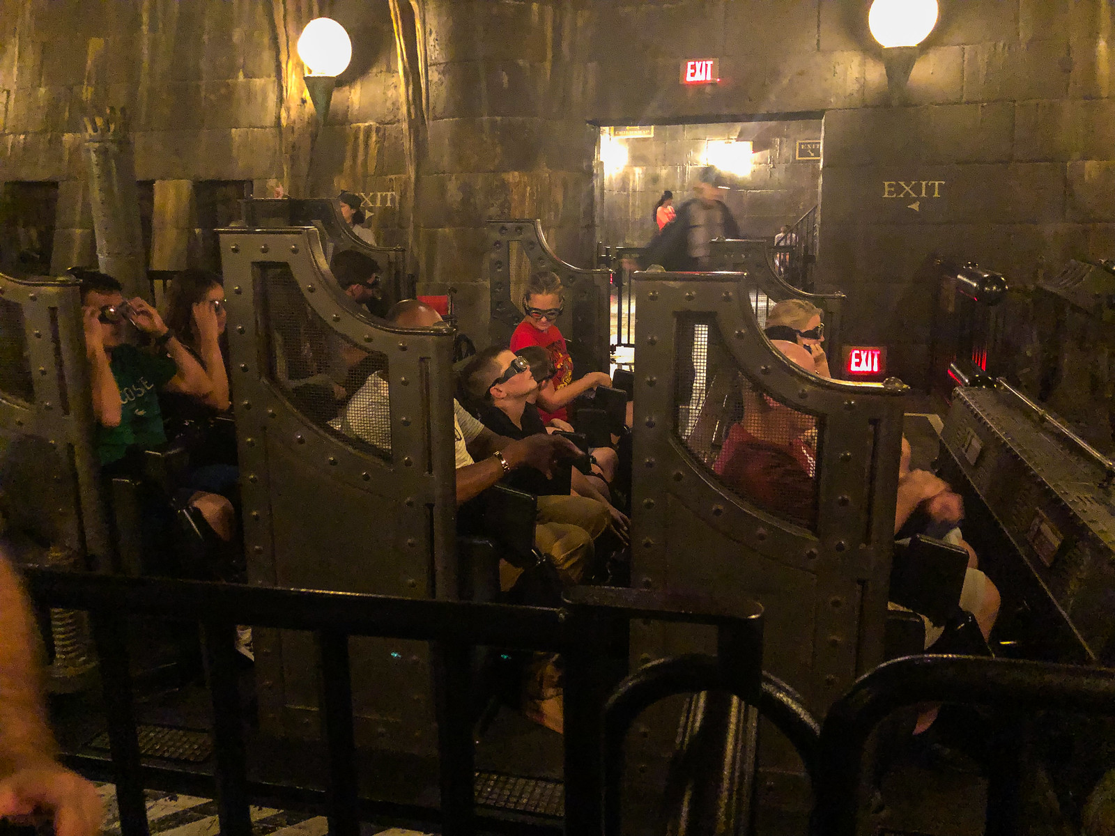 Halfway through our ride the attraction frozen. When it started working again we weren't facing the right direction, so we could hear the action going on but we couldn't see it. I figured the long express pass waits were probably due to the fact the ride had broken down a few times. Unlikely Disney though, Universal didn't seem to be too worried about clearing the Express Pass backlog (considering people pay for the privilege to use Express Pass, whereas Fastpass is free, this seems like a daft move!).