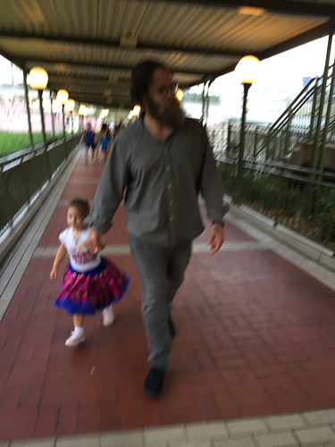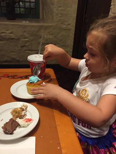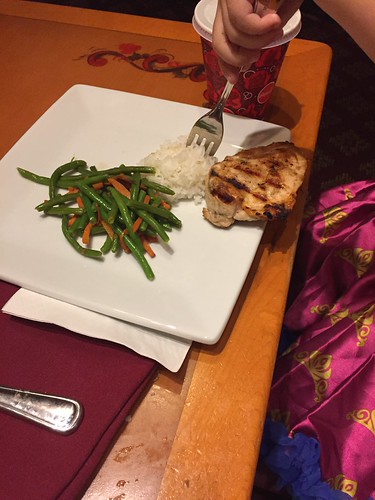 She was a little grumpy, hanger I suppose. We'd had some protein bars and milk for breakfast but we all clearly needed food. The show was super cute, and entertaining. Three of my favorite princess and Mickey Mouse? I was happy, as was E! She stayed put for most of the show, then as she was losing interest, Elsa made snow from her hand and Elora went bonkers. She kept asking me “Did you see that?!” It was hoot.