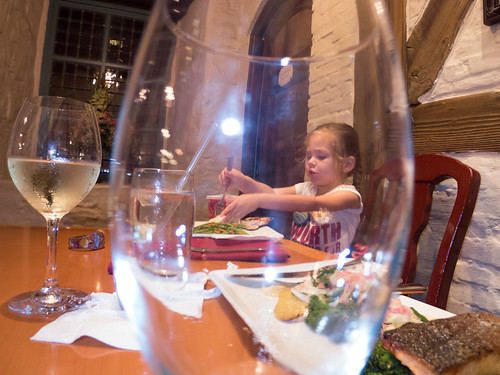 Show ended, and Guido met us near Sleepy Hollow. It was just after 11:30 AM by then so we went back to Harbour House. Guido was clearly about done. Idk if it was heat, hunger or stress from his new deadlines, but he was not happy. I sent him to find a seat with Elora and went for food. I ordered the Sampler platter and the kids nuggets for us to share. As well as two cokes, and a milk for Elora. It was honestly the perfect amount of food. We sat for a while, the dining area was still quiet, so we just enjoyed the AC, and chatted a bit.