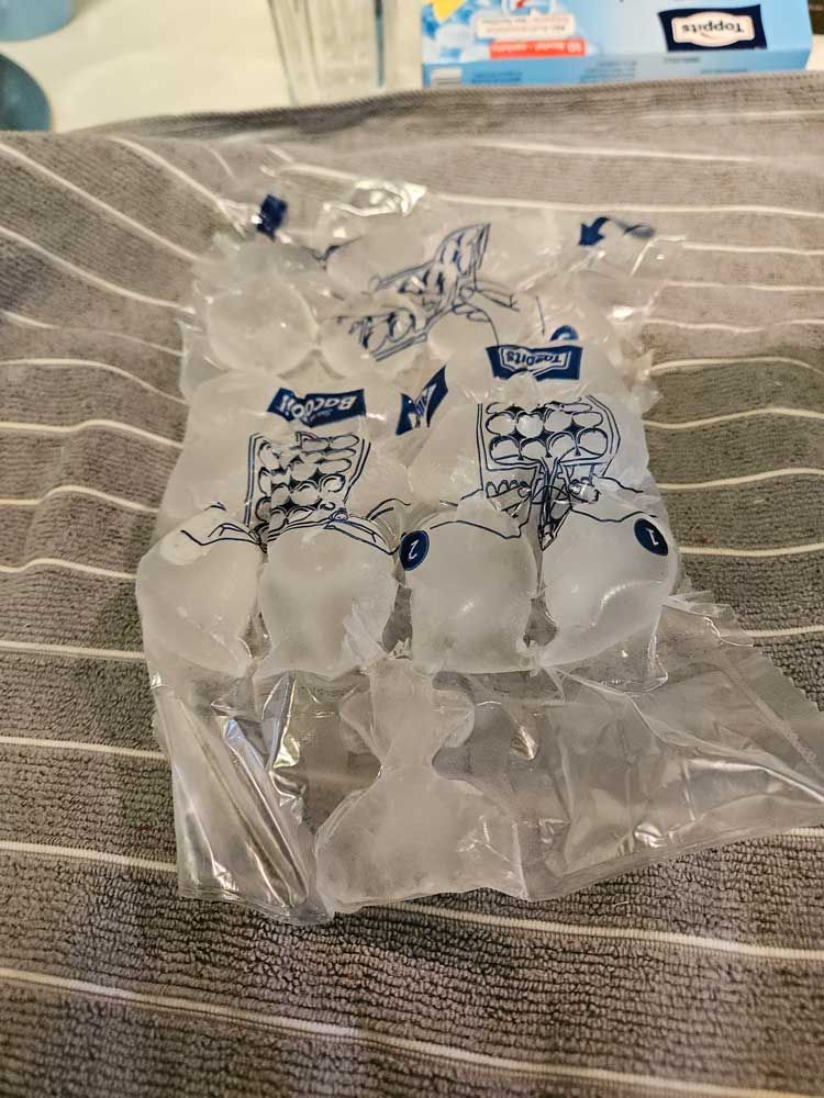 I got dressed and was pleased to find that my ice cubes had formed overnight. This one baggie produced enough cubes to fill my whole water bottle.