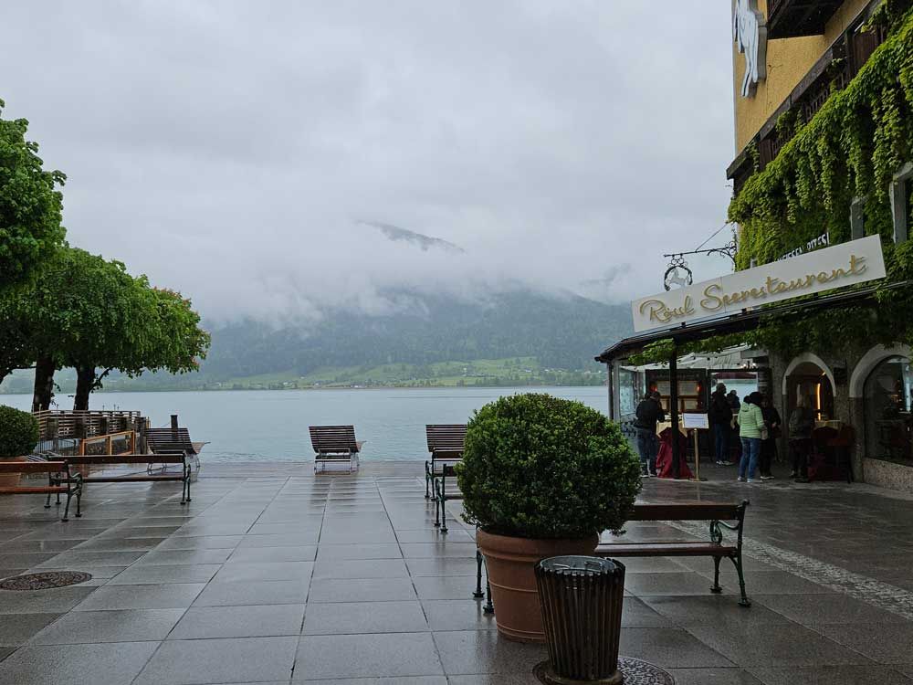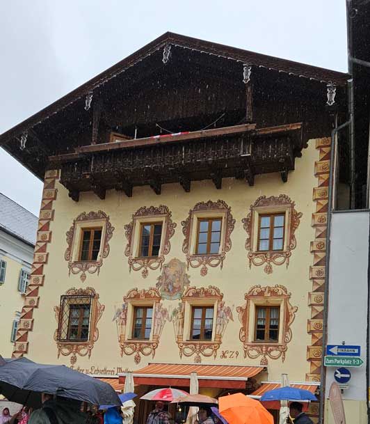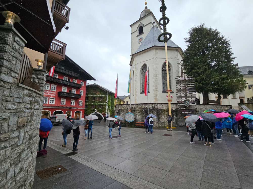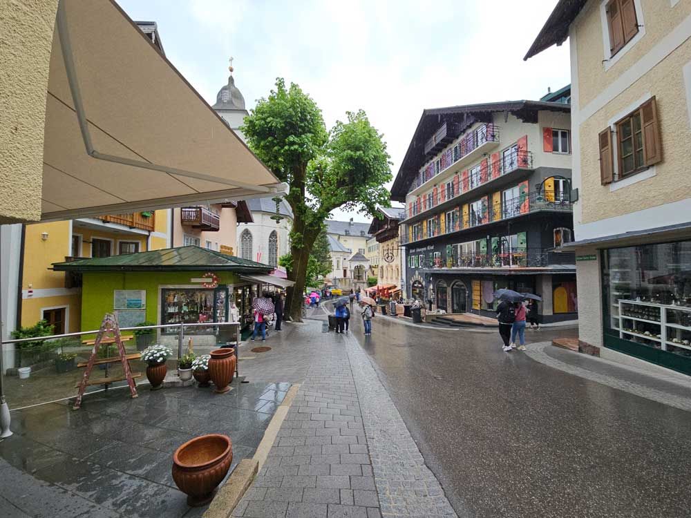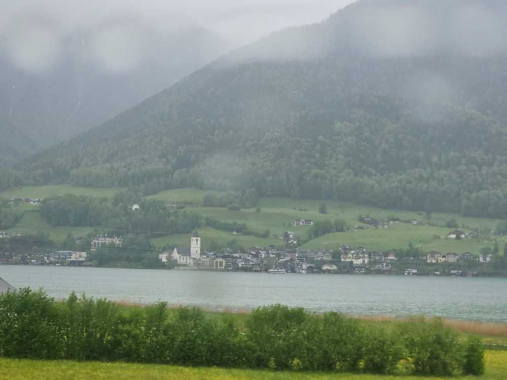 Then we drove around to the other side of the lake to a cute little town called St. Wolfgang. It would have been a lot cuter, if it hadn’t been raining out. We parked the car at the top of the hill and began to walk down towards the lake.