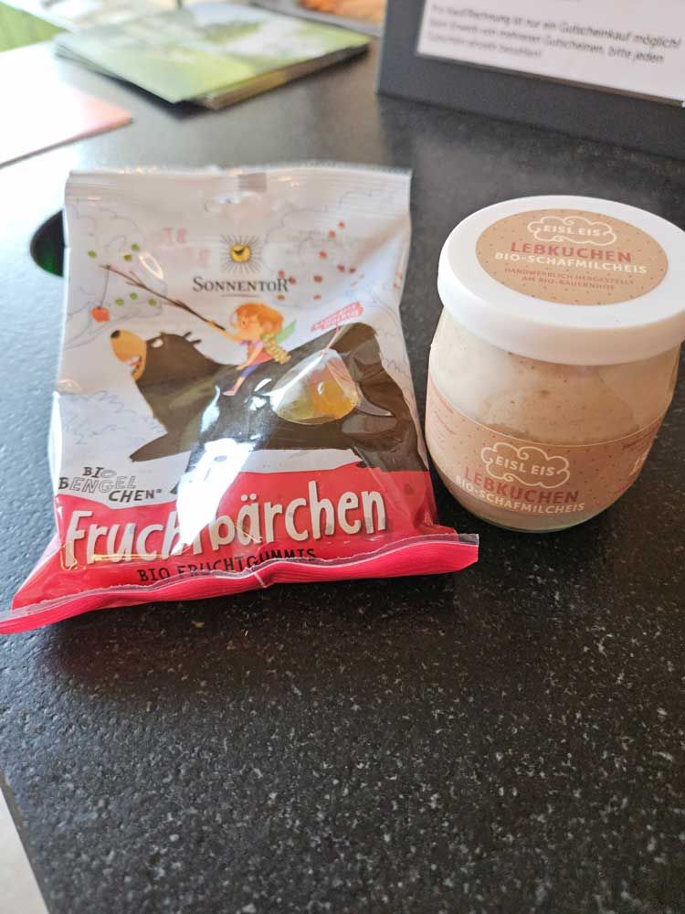 I got some of their ice cream, gingerbread flavor. It was very good. Also some natural gummi bears.