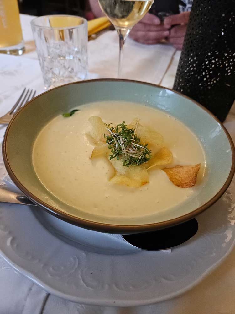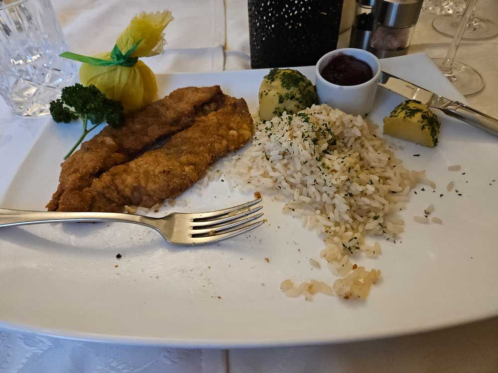 They picked me up around 6:15 and we headed to another Austrian Style restaurant. Originally our dinner reservation had been at another place for 8PM when Karin thought that we would spend longer in St. Wolfgang. The weather put a damper on that plan, so we ended up back in Linz much earlier than expected. She was able to get a 6:30 dinner time here and they even had the elusive dish I had been searching for!