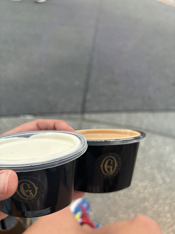 This makes me SOOOOO happy to read. I'm so glad to hear that the cold brew was able to help you rebound! That first day of Disney is always such a toss up because you can get into a lull at one point and realize you're exhausted, excited, hungry, and a bit nervous/not focused on eating all at the same time. I'm so happy that you were able to overcome the "first day hump" and start really enjoying your evening at Springs!!!This donut was great!! It had a squishy, almost mochi-like texture to the dough and we could tell that it was very fresh. However, it had a bit too much sanding sugar on the outside and got really crunchy towards the end. Again, we rated this an 8/10- we would definitely buy and eat this again!