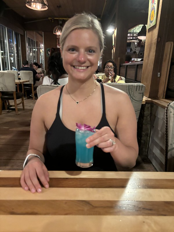 Oh oh! Good thing Jake knows his wife well!The tipsier Jake got, the quieter I got!!I hadn’t eaten anything since my big breakfast at 9:30 AM Wisconsin time (it was almost 8 PM Florida time), and although I didn’t feel physically hungry, I felt my blood sugar start to drop! I was a little concerned, because I didn’t feel very Disney-ish at this point