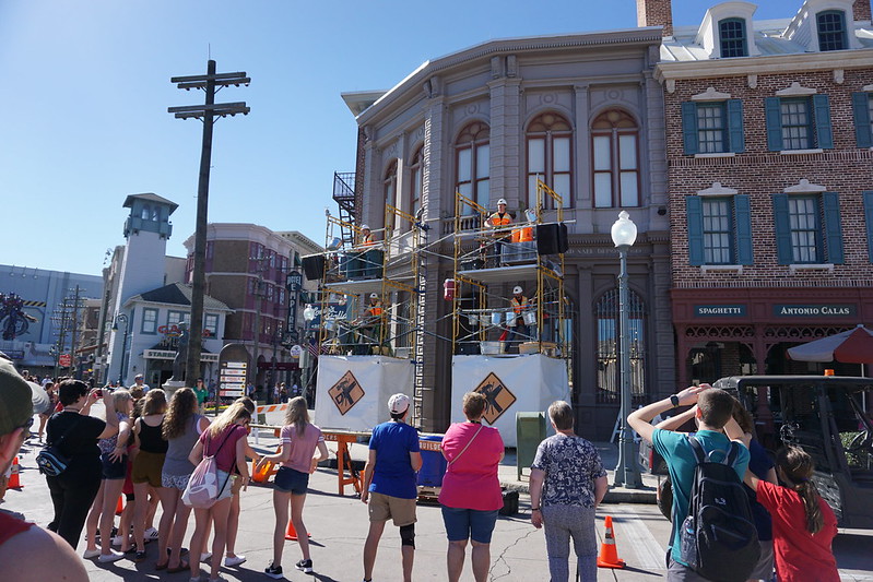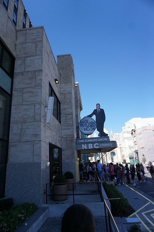 We decided to head over to see the Jimmy Fallon ride. DD was already asking to go back to the room. (It was probably about 11 AM at this point.) One other thing I like about Universal is all the entertainment they seem to have going on. This was one of many acts they have going on – just guys banging on stuff – but it gathered a crowd.