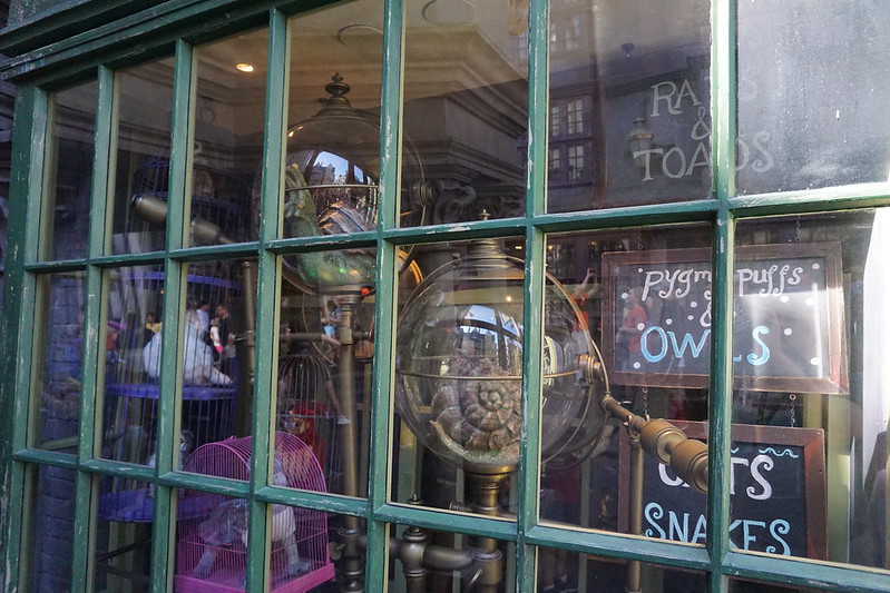We started by heading for the sweet shop. DD wanted to get two mini Pygmy Puffs and some chocolates for herself and her friends. It was at this point that we were notified that our room was ready. I remember this because I had just filled out the form to deliver stuff to the resort but didn’t know the room yet, and then immediately got a text.