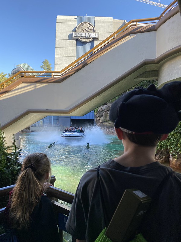 The kids wanted to watch the boats come down at the Jurassic World attraction since we didn’t end up riding it.