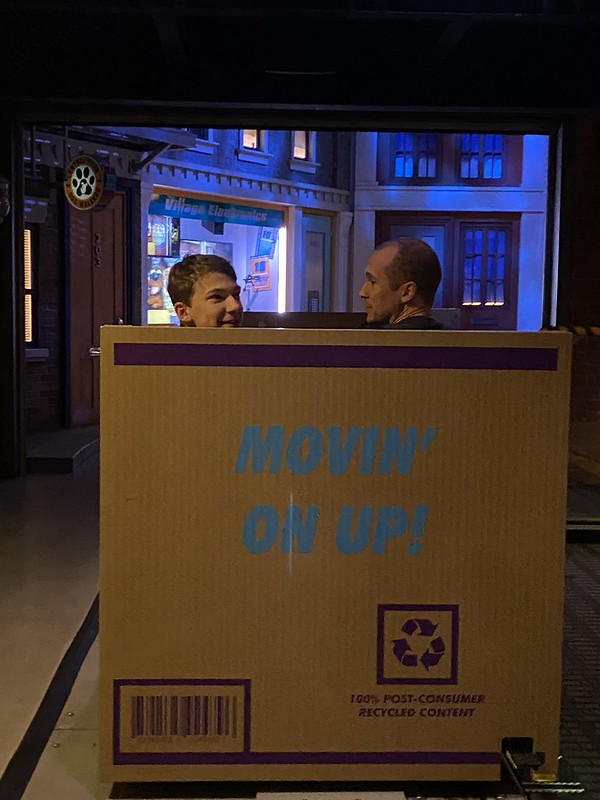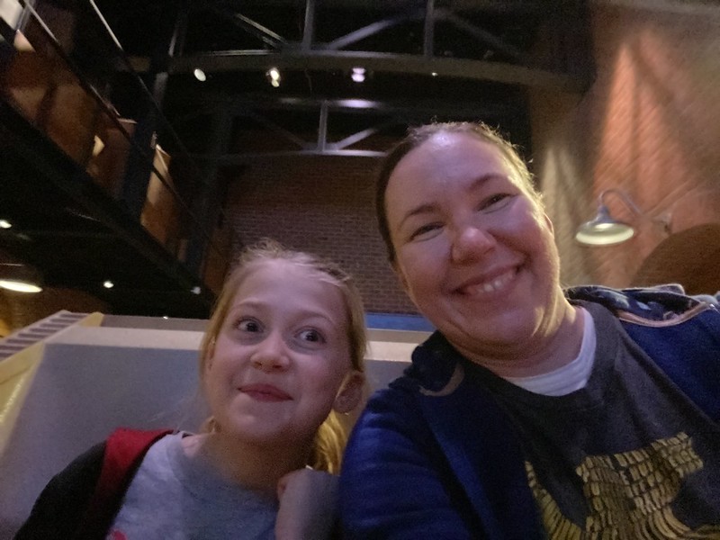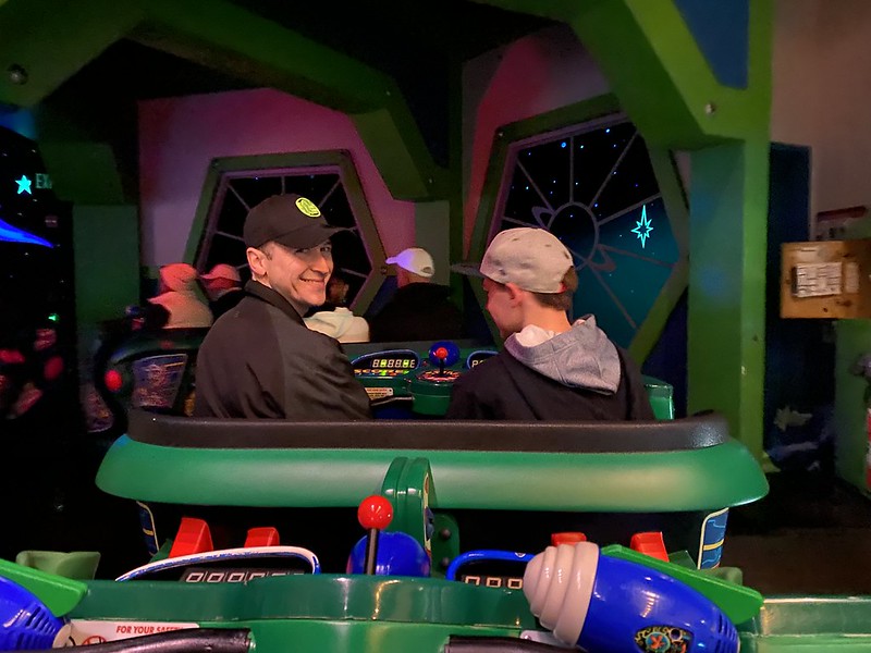 There he is, that’s Elijah! Except that he told everyone thank you, but it wasn’t really his birthday, then went through one of the doors to a control room to jokingly fuss at the guy who had made the announcement in the first place. We even saw him again as we exited the ride later on and told him happy birthday again!! Lol
