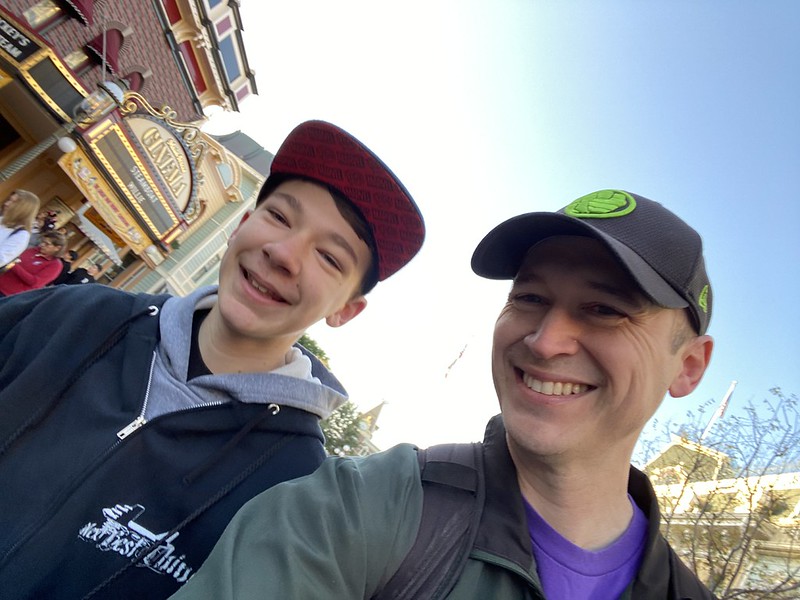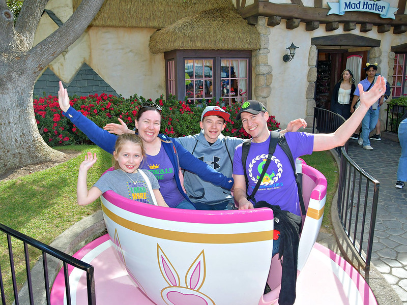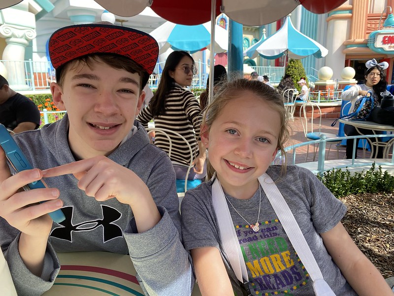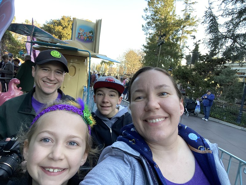 So great getting to meet up with friends in a Disney park! And it just so happened we knew another family in the park that day. One of DS’s friends from school was also visiting Disneyland during this Mardi Gras break with his family! The two of them had been texting all morning, but we always seemed to be on the opposite side of the park from them, but now he was in Fantasyland. Since we were right there in the hub, we made our way up to the Castle to meet up with him and his mom.