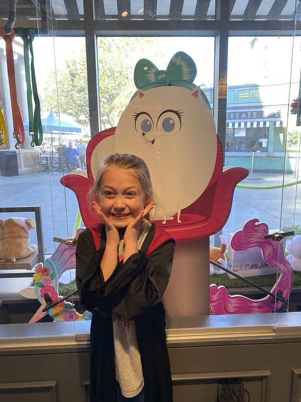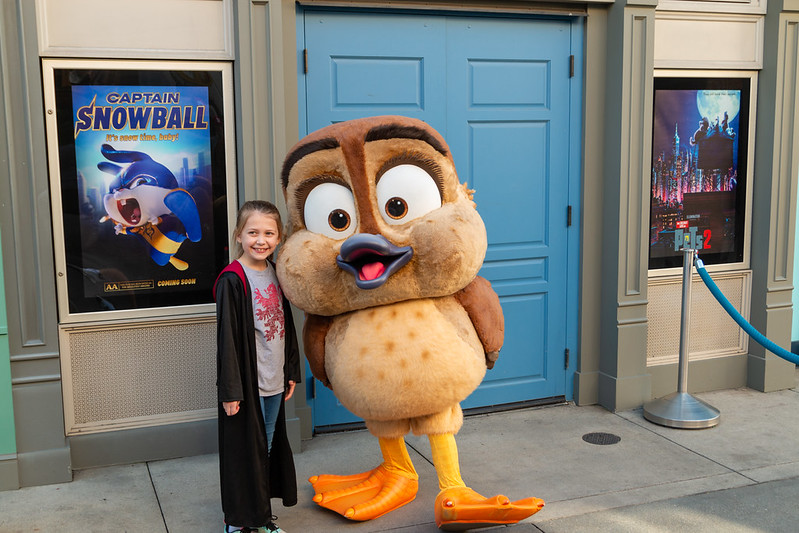 As we walked down the street towards the DreamWorks theater, Beetlejuice was out and bent down talking to a kid. DD said to us, “Who is that?” Well, Beetlejuice heard her and YELLED across the street, “WHO ARE YOU??!! I don’t know who YOU ARE!!!” DD was so embarrassed, but it was honestly hilarious!!! I wish I had been recording!