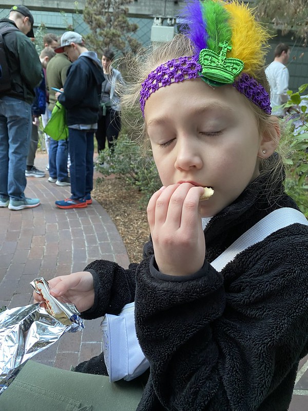 That is so cool you got to be in New Orleans Square for Mardi Gras! That pizza turnover looks really good, I keep seeing it on TikTok and I know my teenager would love that.